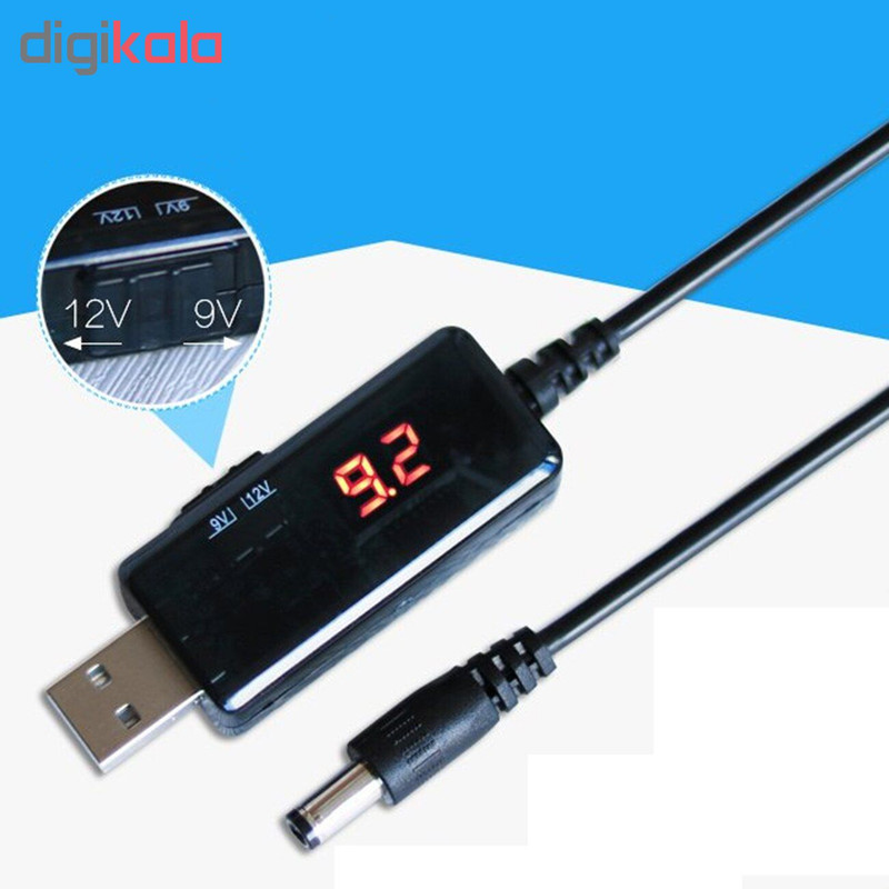 این مبدل دارای ورودی پورت USB می باشد و خروجی سیم آداپتوری 9 ولت یا 12 ولت می باشد، توسط یک کلید ولتاژ خروجی 9 یا 12 ولت قابل انتخاب می باشد. ولتاژ خروجی توسط نمایشگر روی کابل نشان داده می شود. از طریق پورت USB می توانید آنرا به پاوربانک یا شارژر فندکی خودرو متصل نمایید و خروجی 9 یا 12 ولت آنرا به مودم ثابت خانگی خود متصل کنید با این کار میتوانید مودم های ثابت را که دارای ولتاژ 9 یا 12 ولت هستند روشن کرده و همراه خود ببرید.