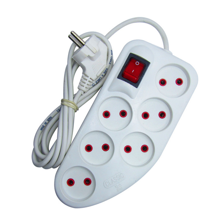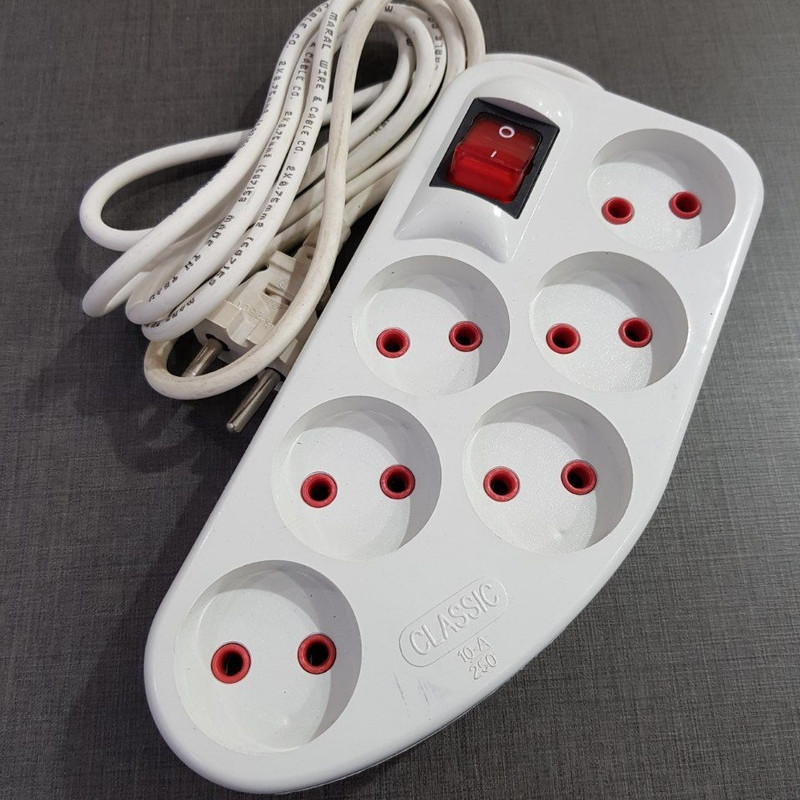مبدل 6 راهی برق بسیار راحت و کاربردی جهت استفاده در آشپزخانه، تلویزیون و... کابل 1/5 متری در رنگ های سفید و کرمی ساخت داخل کشور دارای کلید خاموش و روشن