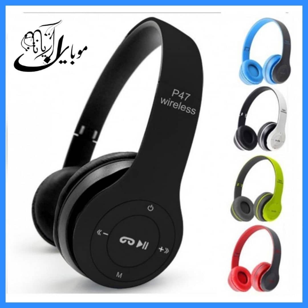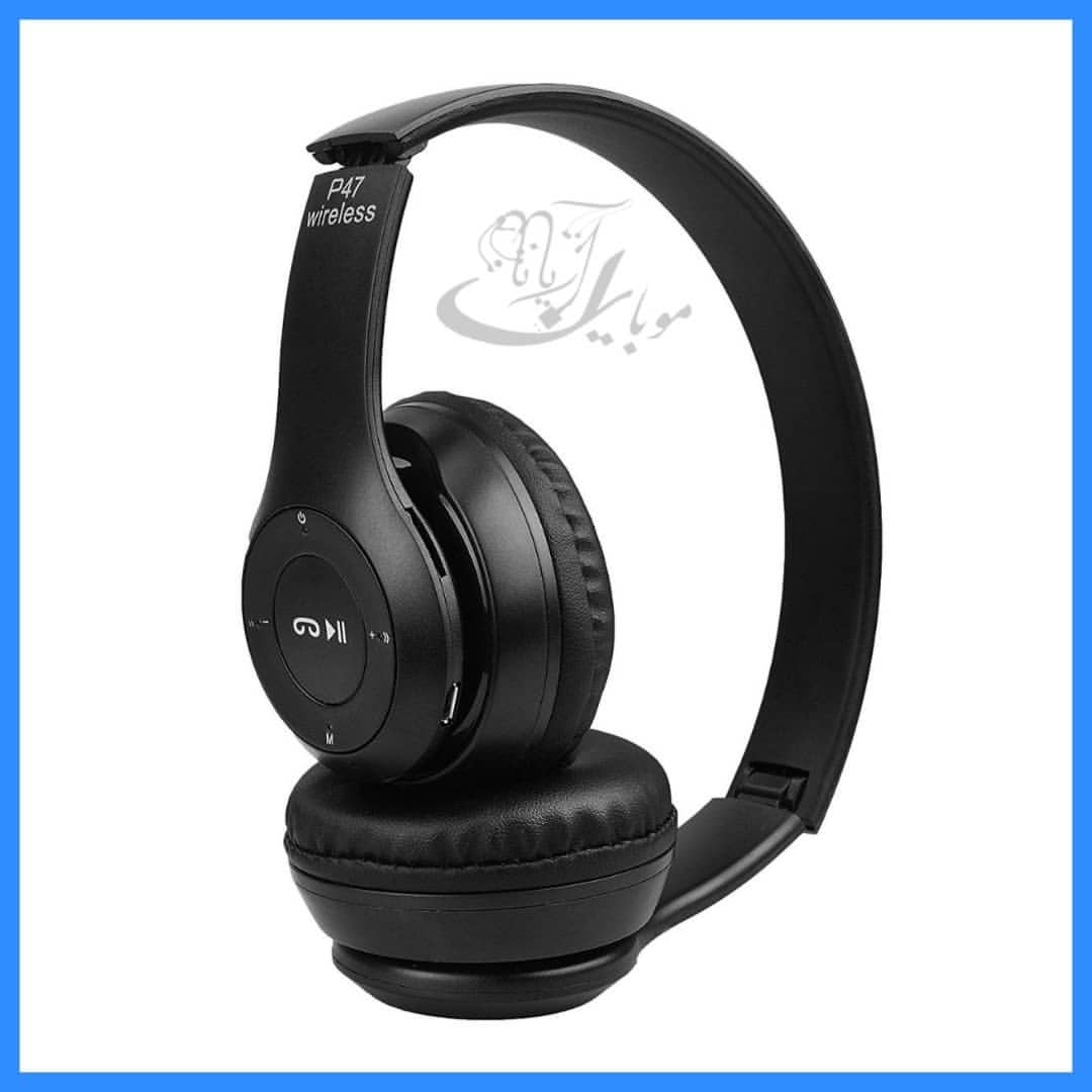 هدست P47 با نوع اتصال بی سیم و باسیم مناسب برای کاربری عمومی و قابلیت مکالمه تلفنی، دارای شیار کارت حافظه و پشتیبانی از رادیو.